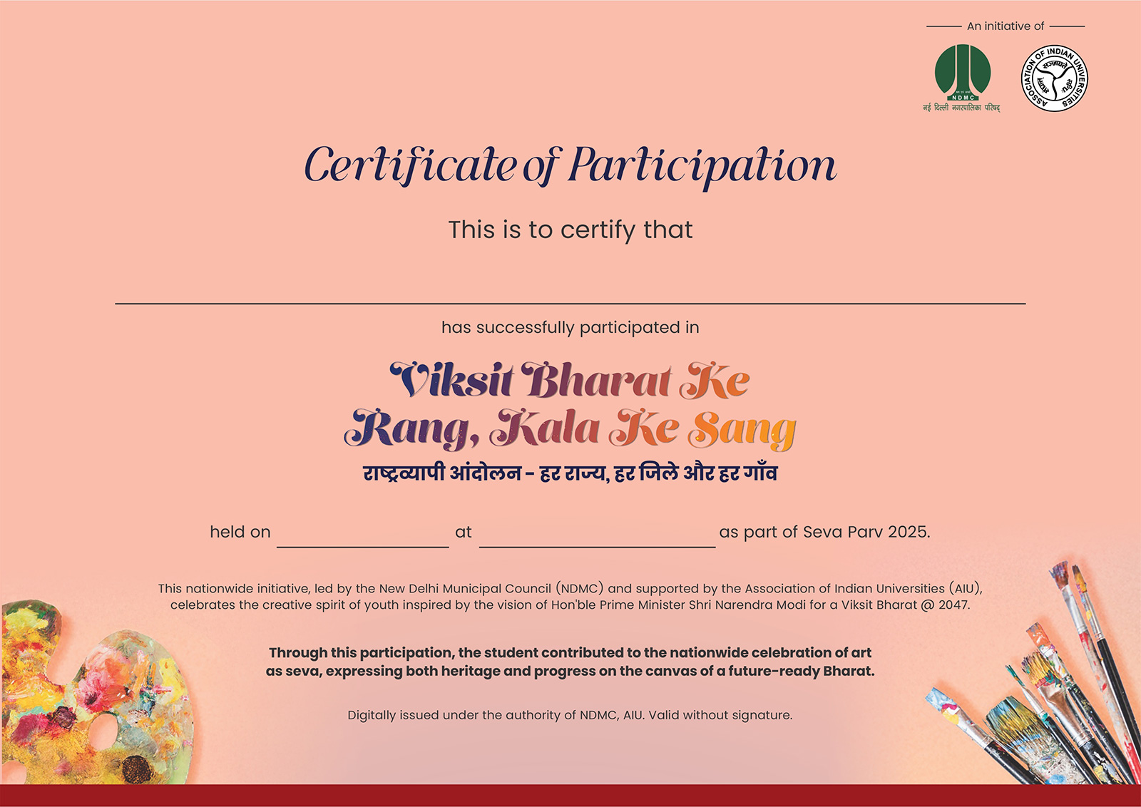 “Viksit Bharat ke Rang, Kala ke Sang – Youth Expressions for a Developed India” is a nationwide celebration of imagination and service, where the youth of India step forward to envision the nation’s future. As part of Seva Parv 2025, this initiative invites students to transform their creativity into a voice that shapes the story of Viksit Bharat @ 2047.